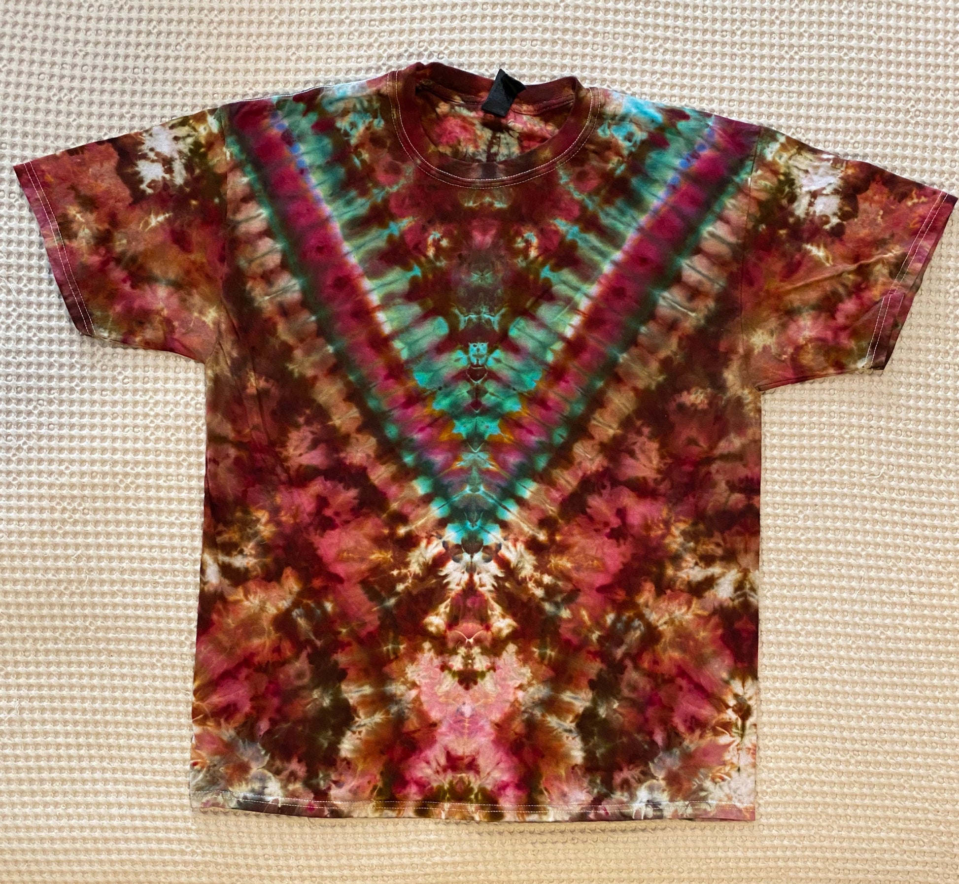 All shirts are made with professional strength dyes to maintain color for years to come. Every shirt is one of a kind and although the artist can replicate them there may be subtle differences.