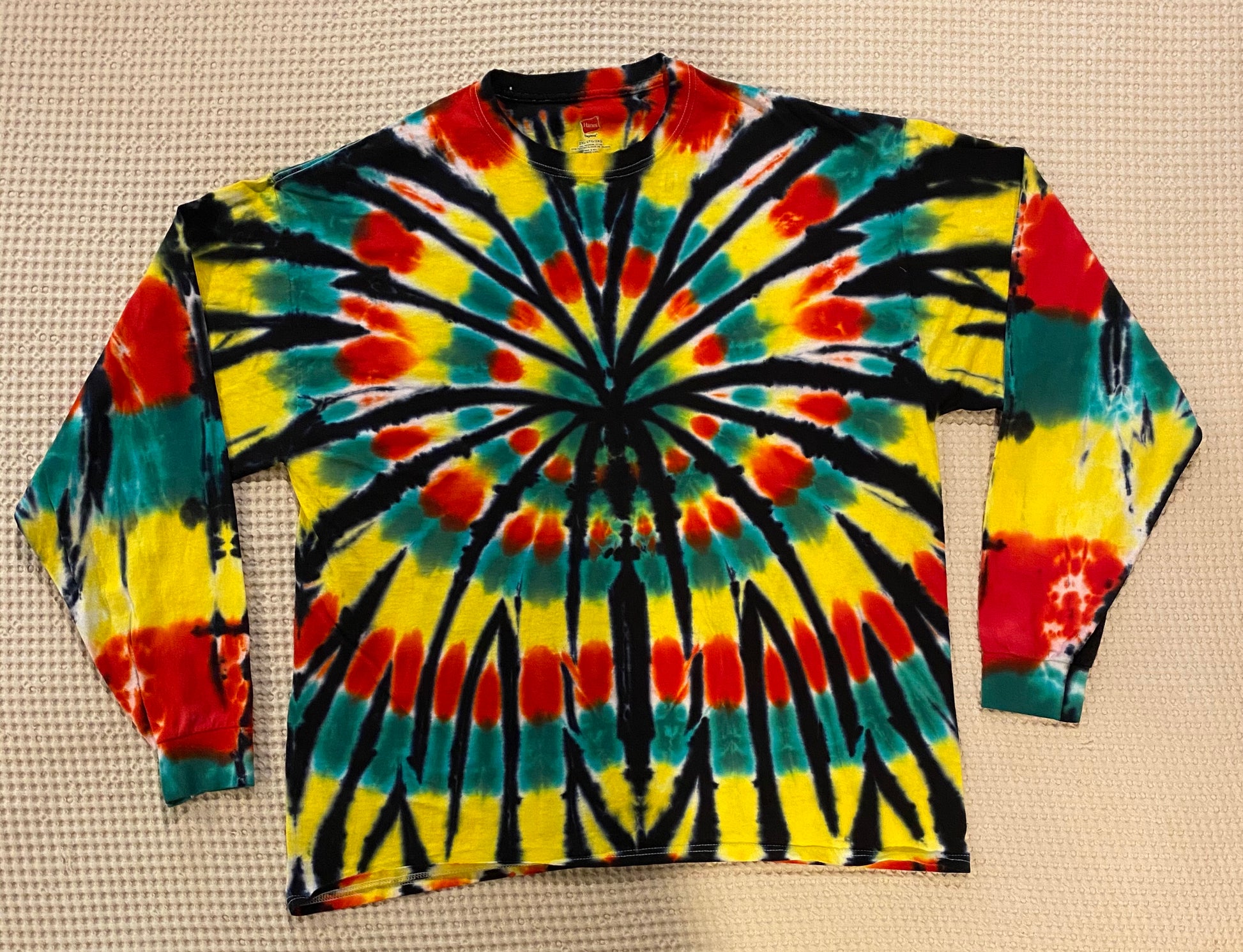 All shirts are made with professional strength dyes to maintain color for years to come. Every shirt is one of a kind and although the artist can replicate them there may be subtle differences.